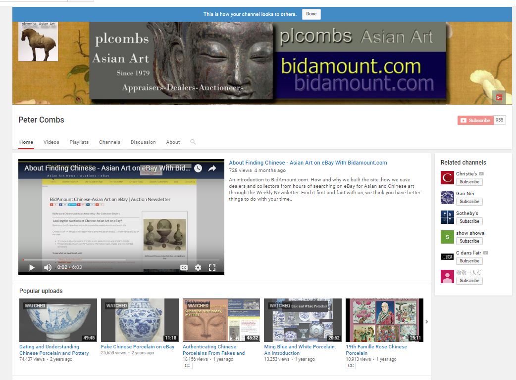 About plcombs Chinese-Asian Art on YouTube, helping our customers and friends stay informed about the Chinese and Asian art market.Â